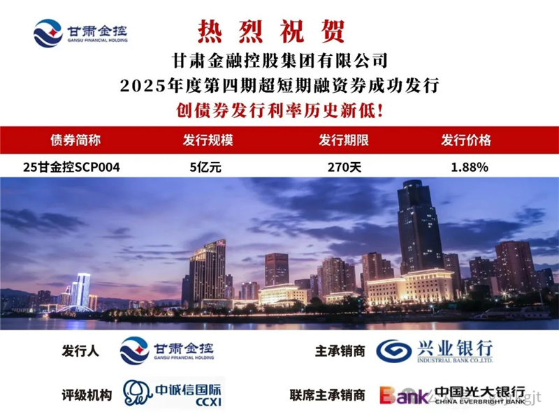 2025年6月26日,bw必威网页版_BW必威(中国) 成功发行2025年度第四期超短期融资券“25甘金控SCP004”,规模5亿元,期限270日,票面利率1.88%,创集团债券发行利率历史新低,有助于集团降低融资成本。