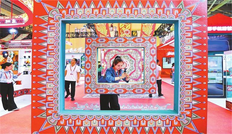 参观者在非遗文创馆打卡。