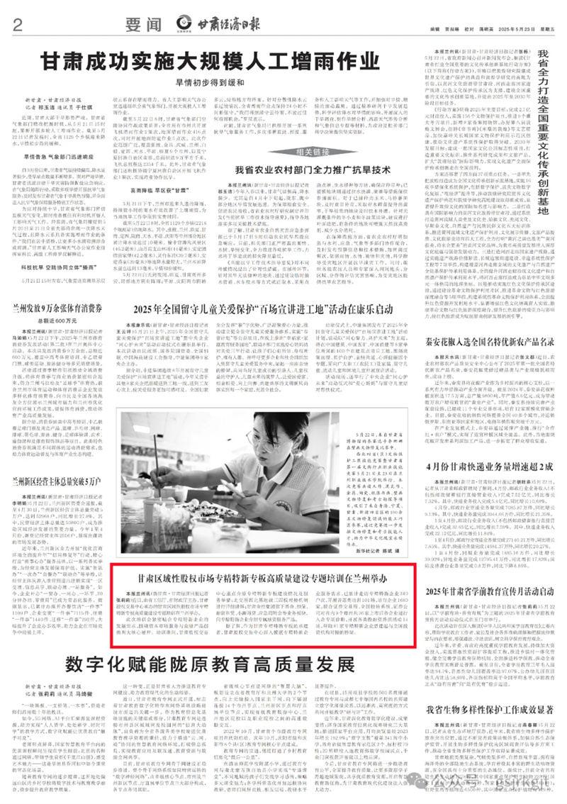 甘肃区域性股权市场专精特新专板高质量建设专题培训在兰州举办