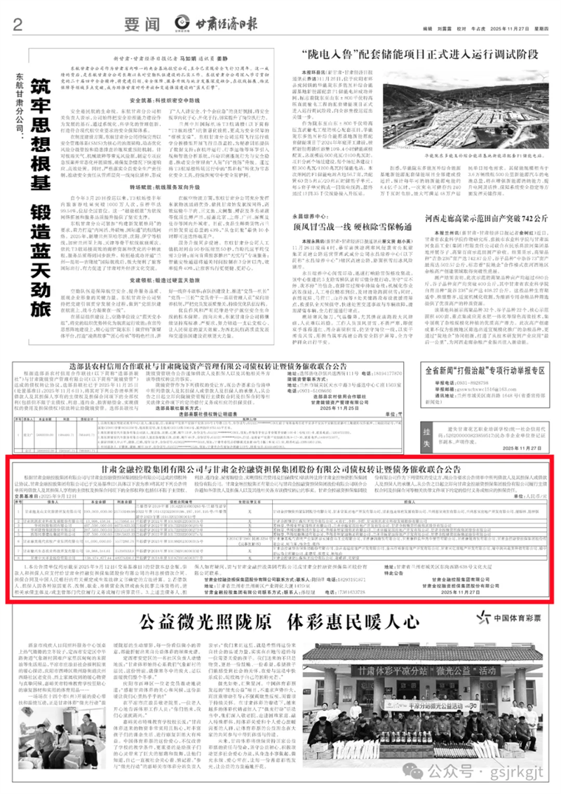 与甘肃金控融资担保集团股份有限公司债权转让暨债务催收联合公告