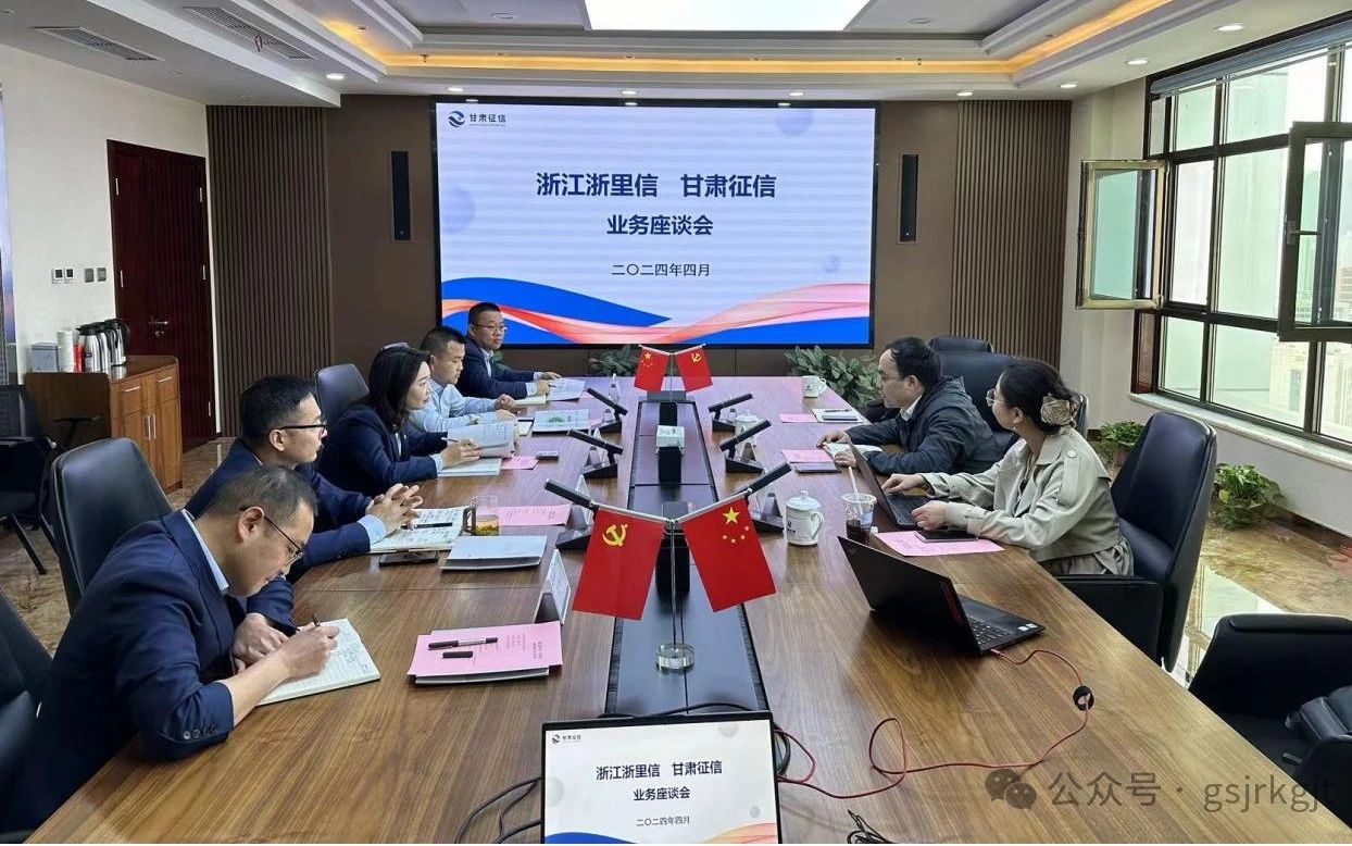近日,浙江浙里信征信有限公司(以下简称“浙里信征信”)总经理唐嘉成、副总经理陈晓旭带队来访甘肃征信,甘肃征信董事长白莉、副总经理王亚斌及相关部门人员参加交流。