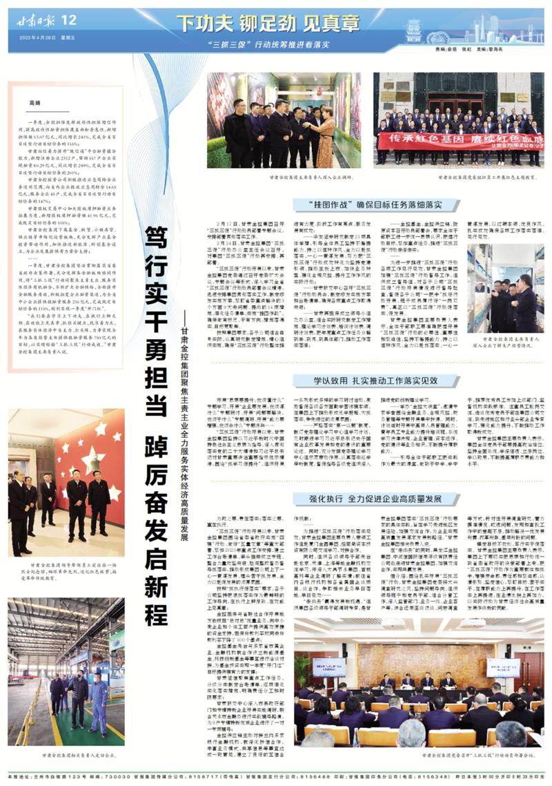坚持以习近平新时代中国特色社会主义思想为指导,深入贯彻落实党的二十大精神和习近平总书记对甘肃重要讲话重要指示批示精神,围绕“抓学习促提升”,组织开展一系列形式多样的学习研讨活动,激励督促各级各方面勤学苦练强本领,在集团上下推动形成比学赶超、大抓落实、争先进位的浓厚氛围: