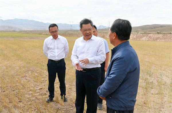 省委副书记、省长任振鹤8月19日在兰州市永登县调研抗旱减灾工作。他强调,要深入学习贯彻8月17日中央政治局常委会会议精神,深刻认识当前旱情的严峻性和做好抗旱减灾工作的紧迫性,立足保障国家粮食安全、巩固拓展脱贫攻坚成果、稳住农业快速发展势头,全力做好抗旱减灾各项工作,最大限度降低旱情损失,确保城乡居民饮水安全,确保农业生产安全,齐心协力、多措并举打赢防旱抗旱这场硬仗。