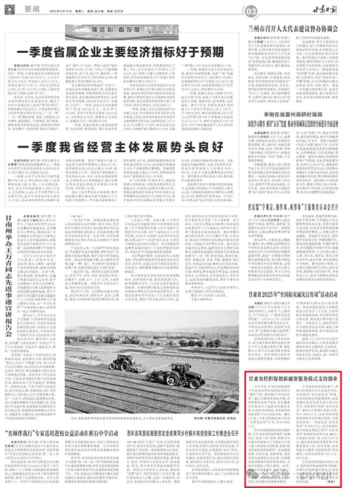 甘肃金控担保创新融资服务模式 为创业“贷”来新机遇