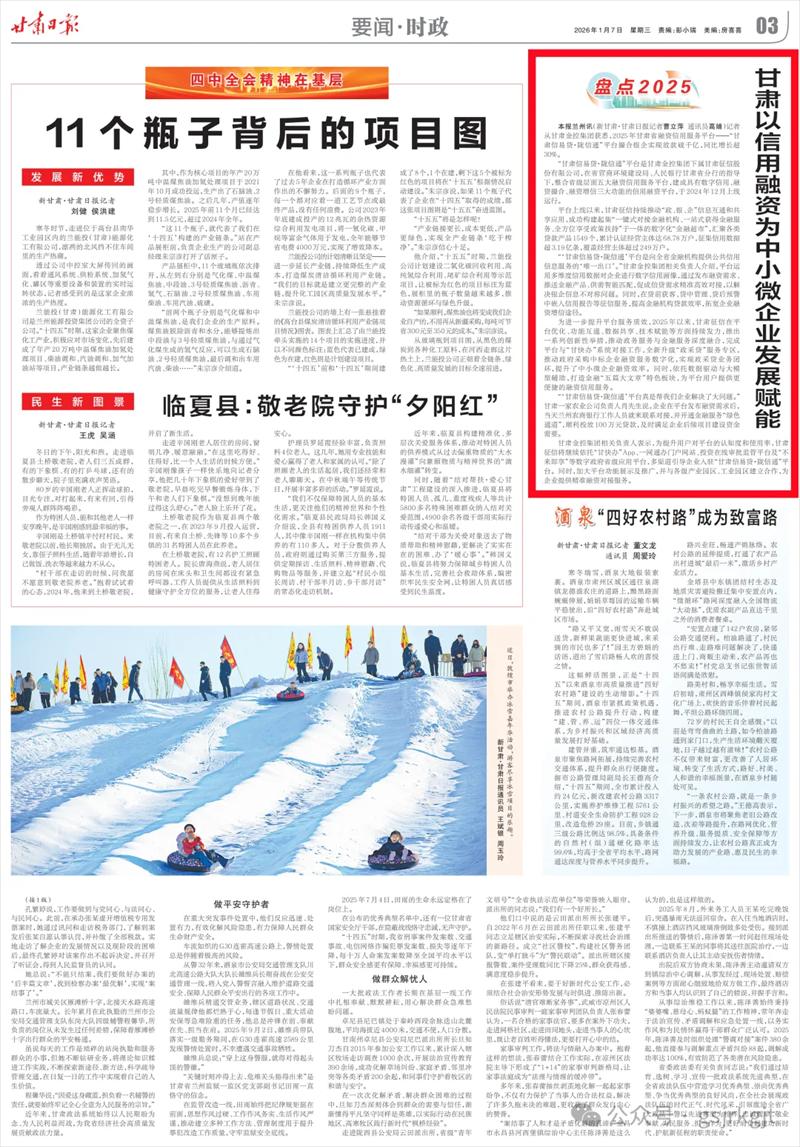 为进一步提升平台服务质效,2025年以来,甘肃征信在平台优化、功能互通、数据共享、技术赋能等方面持续发力,推出一系列创新性举措,推动政务服务与金融服务深度融合,完成平台与“甘快办”系统对接工作,全新升级“政采贷”服务专区,推动政府采购中标企业融资服务数字化,实现政采贷业务闭环,提升了中小微企业融资效率。同时,依托数据驱动与大模型辅助,打造金融“五篇大文章”特色板块,为平台用户提供更便捷的融资信用服务。